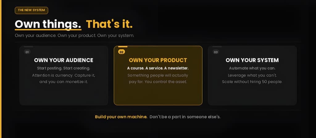 Own your product: A course, a service, a newsletter, a community. Something people will actually pay for.